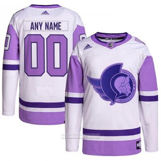 Camiseta Hockey Ottawa Senators Personalizada Fights Cancer Autentico Blanco Violeta
